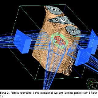 Tidligere bestrålede man store områder uden kendt tumorvæv, men hvor der formodedes at være speciel høj risiko for tilbagefald. Det medførte en betydelig lungetoksicitet og begrænsede i høj grad den dosis, der kunne benyttes i behandlingen. For at forbedre lokal-kontrollen har man søgt at øge stråledosis på bekostning af at gøre det bestrålede område mindre. Ved den såkaldte tredimensionale konformteknik bestråles kun områder, hvor der ud fra CT mv. formodes at være kræftvæv, og det har ikke kunnet dokumenteres, at det i nogen væsentlig grad har medført kliniske relevante tilfælde af regionale recidiver i områder, man tidligere ville have bestrålet. Teknikken kaldes tredimensional konformteknik og er den teknik, der benyttes i Odense. Dosis har i fase I-studier kunnet øges betydeligt for lokal til avanceret NSCLC og er i udvalgte situationer øget til 92,4 Gy uden uacceptable bivirkninger [9]. Indtil nu er der dog ikke publiceret overbevisende data, der viser, at den øgede stråledosis forbedrer overlevelsen. I Odense har man kunnet øge dosis til 80 Gy til nogle patienter med stadium I-II, men dette er endnu ikke forsøgt til stadium III patienter.