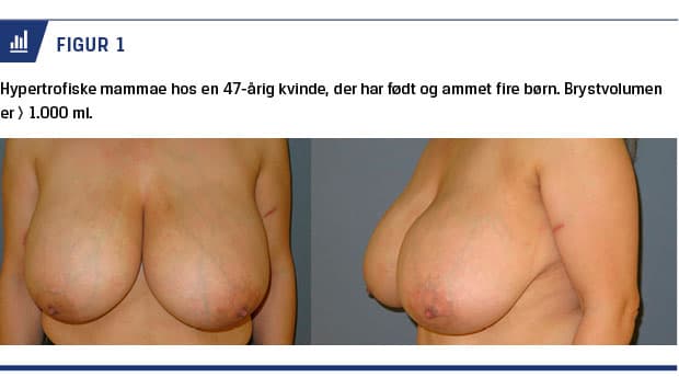 Et præcist mål på et normalt stort bryst findes ikke [12-15]. De fleste studier viser, at bryststørrelsen varierer mellem forskellige etniske grupper og for en stor del er arvelig, men også afhængig af kvindens legemsvægt (Figur 1). Kvinder med mammahypertrofi er generet af tyngden, mammaes fysiske størrelse samt uønsket opmærksomhed. Tyngden kan forårsage smerter i ryg, skulder og nakke samt spændingshovedpine [15]. En del lider af intertrigo, fugt og svamp. Der kan opstå psykosocialt besvær som dårligt selvværd og utilpashed ved at vise sig offentligt. Mammae kan være i vejen og genere patienten ved fysisk aktivitet [15, 16].