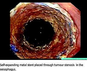 Selvekspanderende metalstent (SEMS) eller argonplasmakoagulation (APC) er primær behandling til patienter med obstruerende malign øsofagusstenose.