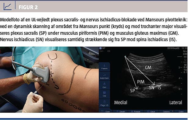 Perifere nerveblokader (PNB) er en tiltagende hyppigt anvendt metode til kirurgisk anæstesi eller postoperativ smertebehandling, hvor de perifere nervers impulsledningsevne blokeres ved brug af lokalanæstetika (LA). Tidligere blev de fleste PNB anlagt vejledt af overfladeanatomiske kendingsmærker eller en elektrisk nervestimulator, der aktiverede de motoriske fibre i nervebundterne [1]. Siden UL første gang blev brugt til at lokalisere disse nervestrukturer, har metoden i stadig stigende omfang vundet indpas, og de UL-vejledte PNB er i dagens Danmark formentlig den mest anvendte teknik. Denne udvikling har fundet sted på trods af, at det endnu ikke i randomiserede eller epidemiologiske undersøgelser er påvist, at UL-vejledte PNB er forbundet med færre komplikationer eller signifikant bedre anslag end andre teknikker [2, 3]. Andre undersøgelser har dog vist, at UL-vejledte PNB kræver mindre dosis LA og bevirker en hurtigere udførelse og anslag af blokaderne end andre teknikker [4].