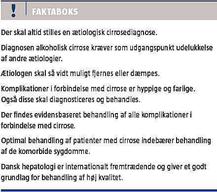 til hyppig kontakt til sundhedsvæsenet. Alle klinisk arbejdende læger kommer således ud for at skulle træffe alvorlige og vanskelige beslutninger i disse sygdomsforløb. Det er vi godt rustede til i Danmark pga. vores betydelige videnskabelige indsats vedrørende cirrose.