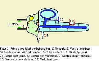 Symptomerne ved Menières sygdom er forårsaget af intermitterende fluktuationer af labyrintens funktion, og sådanne fluktuationer muliggør ikke nogen central kompensation. Derfor må sygdommen ideelt behandles lokalt. Lokal overtryksbehandling udgør en ny behandlingsstrategi, som er uskadelig for det indre øre. De trykændringer som Meniett-apparatet inducerer i perilymfen medfører øjeblikkeligt ændringer i det endolymfatiske rum. Principperne i behandlingen fremgår af Figur 1.