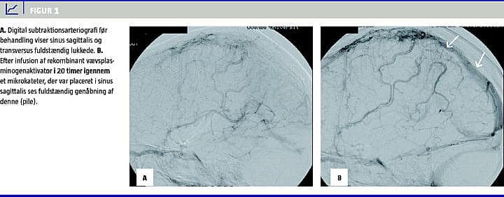Dural sinus trombose (DST) er en sjælden sygdom, som især rammer unge kvinder. Tilstanden har oftest en god prognose, men der er en akut dødelighed på 5%. Den traditionelle akutte behandling er intravenøs heparin. En mindre gruppe af patienterne responderer imidlertid ikke på denne behandling, men vil udvikle fortsat faldende bevidsthedsniveau. Stupor eller coma kombineret med intrakraniel hæmoragi ved indlæggelsen øger risikoen for fatal udgang markant [1]. Andre prædiktorer for dårligt behandlingsudfald er trombose af de dybe vener, høj alder, mandligt køn og motoriske udfald.