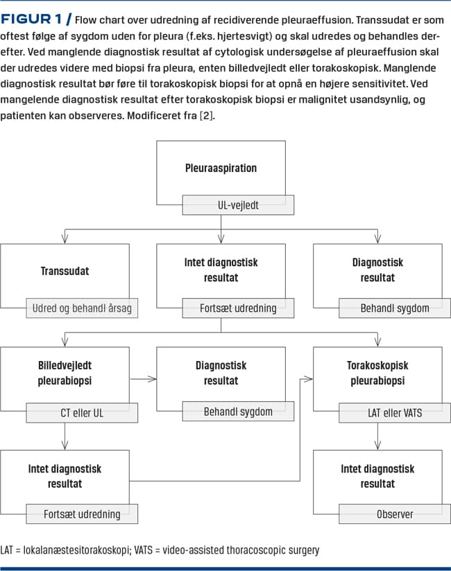 Figur 1 viser en foreslået rækkefølge af de tilgængelige invasive diagnostiske procedurer ved udredning af pleuraeffusion.