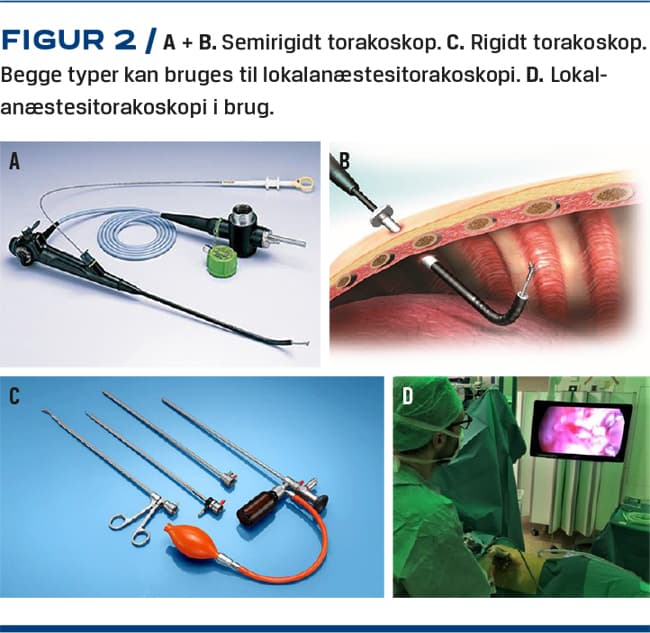 Torakoskopi blev først udført i 1910 af den svenske læge Hans Christian Jacobaeus (1879-1937) med et stift cystoskop. Fra 1960'erne forfinedes torakoskopiteknikken, som siden da er betragtet som guldstandard for udredning af pleurasygdom, herunder malignitet og pleuratuberkulose [2]. LAT er meget anvendt i England, Tyskland, Italien og Grækenland samt i lande med høj forekomst af pleuratuberkulose [3]. I Danmark udføres der LAT på lungemedicinske afdelinger i Næstved, Gentofte, Aarhus og Odense. På de øvrige lungemedicinske afdelinger henviser man uafklarede patienter til en thoraxkirurgisk afdeling, hvor torakoskopi udføres i fuld bedøvelse med enlungeventilation og videoskopadgang via 2-3 porte, såkaldt video-assisted thoracoscopic surgery (VATS)-torakoskopi.