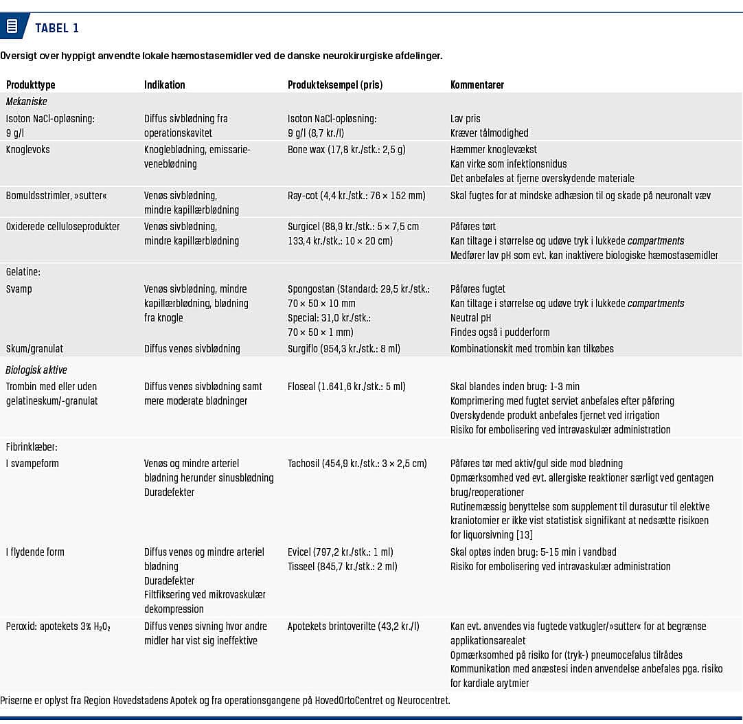Kirurgiske hæmostasemidler til topisk anvendelse kan opdeles i mekaniske og biologisk aktive produkter (Tabel 1), som kan udøve deres virkning på både den primære og den sekundære hæmostase.