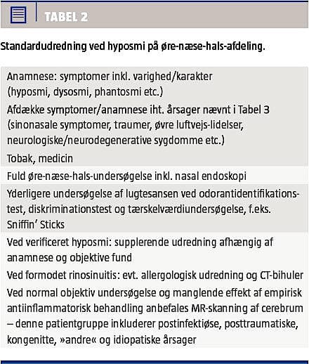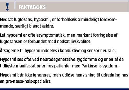 Nedsat lugtesans, hyposmi, er forholdsvis almindeligt forekommende, særligt blandt ældre. Tilstanden er ofte asymptomatisk, men markant forringelse af lugtesansen er forbundet med nedsat livskvalitet, påvirket smag og appetit med risiko for fejlernæring, vægttab og helbredsrisici (indtagelse af fordærvet mad og eksponering for farlige gasser) [1, 2].