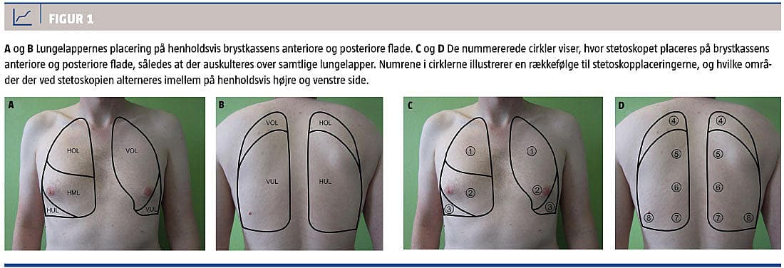 side- og forflade, således at alle lapper auskulteres (Figur 1). Alterner mellem tilsvarende områder på højre og venstre lunge.