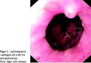 Lymfangiom forekommer sjældent i øsofagus. Ved litteratursøgning i PubMed fandtes kun 14 tilfælde. I denne sygehistorie beskrives et tilfælde af denne sjældne, men godartede svulst i øsofagus, og behandlingen diskuteres.