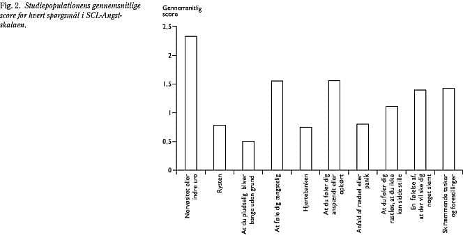 Fig. 2 viser studiepopulationens gennemsnitlige score for hvert spørgsmål i SCL-Angstskalaen.