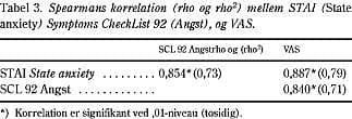 STAI og VAS er tidligere blevet undersøgt på udenlandske populationer for indbyrdes korrelation, når de blev anvendt til måling af præoperativ angst. Derimod har man ikke tidligere undersøgt korrelationen mellem STAI eller VAS og SCL 92.