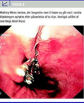 Dette studie præsenterer de første publicerede data fra en dansk patientgruppe med endoskopisk verificeret MW. De kliniske og demografiske data er sammenlignelige med tidligere beskrevne fund både i henseende til hele populationen samt de indbyrdes forskelle mellem de aktivt og konservativt behandlede [2-5, 10-14, 16-18]. Der er dog tidligere i enkelte studier beskrevet en klar association på mellem 76 og 100% for tilstedeværelsen af hiatushernie ved MW [11, 14]. Dette kan imidlertid ikke genfindes i det aktuelle studie, hvor kun hver tredje patient beskrives at have hiatushernie. Som i tidligere studier [8, 16] bemærkes også i dette et lavt transfusionsbehov, der er højest hos patienter med aktiv blødning på endoskopitidspunktet. Endvidere var patienter, som blev aktiv behandlet, indlagt i længere tid, havde lavere hæmoglobin ved indlæggelse, og flere i denne gruppe modtog blodtransfusion, hvilket også er fundet i tidligere studiepopulationer [2, 5, 10]. Blødningsstigmatiserede MW, som undergår aktiv endoskopisk terapi, er således klinisk væsentligt påvirkede i forhold til de patienter, som ikke har behov for endoskopisk terapi.