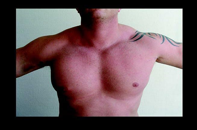 En 34-årig tidligere bodybuilder henvendte sig på skadestuen med en to dage gammel skade i højre arm opstået under forsøg på at løfte 170 kg i bænkpres, hvilket var 40 kg (30%) over patientens normale maksimum ved denne øvelse. Ti år tidligere havde patienten været misbruger af anabole steroider i 2-3 måneder, men havde aldrig injiceret sig i brystmuskulaturen.