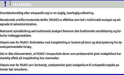 NSAID-præparaternes rolle i smertebehandling peri- og postoperativt samt i forbindelse med konservativ behandling af frakturer er kontroversiel og hviler på et spinkelt grundlag.