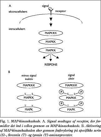Opretholdelse af en flercellet organismes integritet er betinget af kommunikation mellem cellerne og af cellernes evne til at indstille sig efter ydre påvirkninger. Denne kommunikation varetages i vid udstrækning af kemiske budbringere (fx hormoner), der igangsætter cellulær signalering ved binding til specifikke receptorer i cellemembranen. Inde i cellerne føres signalet videre, ofte til kernen hvor der fx kan ske ændringer af genekspression. Det er i denne signaloverførsel, at MAP-kinaserne træder ind som hovedaktører (Fig. 1 ).