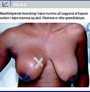 Taksigelser: Tak til overlæge Susanne Bokmand (Mammacentret Sygehus Lillebælt, Vejle) og overlæge Morten Sodemann (Afdeling Q, Odense Universitetshospital) for vejledning og revision af manuskriptet. Desuden tak til overlæge Anne Marie Bak Jylling (Sygehus Lillebælt, Vejle) for gennemgang af de patologiske forandringer ved Kaposis sarkom.