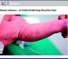 Her omtales et usædvanligt tilfælde af naevus sebaceus med udbredelse langs Blaschkos linjer (Figur 1 ). Fundene medførte differentialdiagnostiske overvejelser og afstedkom unødvendig systemisk behandling.