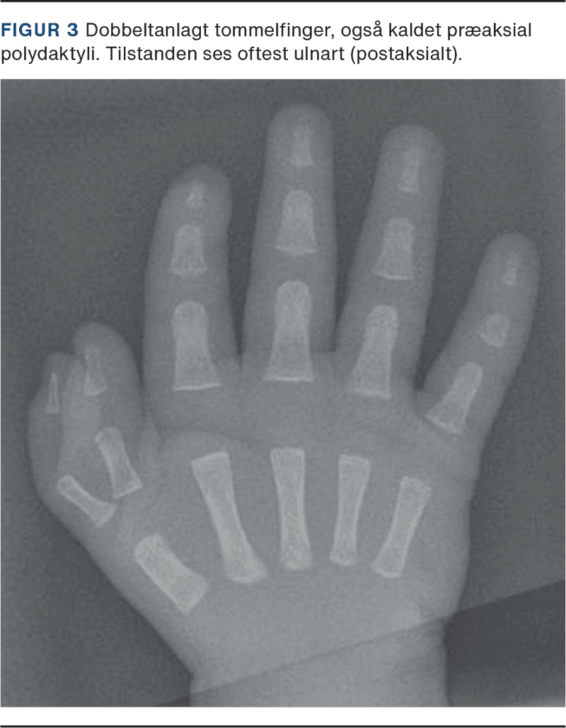 Børn med polydaktyli er født med ekstra fingre og/eller tæer. Tilstanden er relativt hyppig og skønnes internationalt at forekomme hos en ud af 1.500 nyfødte [1]. Ekstraanlægget kan variere i udvikling. Det ses hyppigst postaksialt (ulnart), men kan også sidde præaksialt (radialt) eller centralt. I Norden ses hyppigst ekstraanlæg på siden af femte stråle. Dette er oftest et stilket ekstraanlæg med en base på et par millimeter, hvor selve stilken udelukkende indeholder et kar og nervebundt.