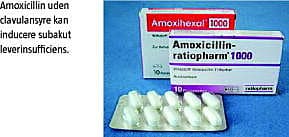 Amoxicillin er et penicillin, der påvirker de gramnegative stave. Det er et velkendt og afprøvet medikament, som længe har været anvendt i behandlingen af øvre og nedre luftvejsinfektioner hos børn og voksne. Det anvendes desuden som endokarditisprofylakse. Generelt tolereres præparatet uden eller med få bivirkninger, der ikke er alvorlige. At amoxicillin i yderst sjældne tilfælde er hepatotoxisk, er beskrevet i udlandet, men det har ikke været muligt at finde det beskrevet i dansk litteratur. I Storbritannien bestemte man i et retrospektivt kohortestudie incidensen af amoxicillininduceret hepatotoxicitet til 0,2-0,5 pr. 10.000 udskrevne recepter [1]. Læser man om bivirkningerne til amoxicillin på medicin.dk, står der intet om hepatotoxicitet.