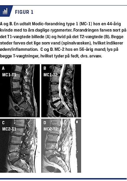 periode opdagede Modic med brug af den nyopfundne MR-teknologi, at visse signalforandringer (senere benævnt Modicforandringer (MC) ofte kunne ses i den diskusnære endeplade og den tilhørende vertebra hos en del patienter [7]. Han mente dog ikke, at disse forandringer havde nogen klinisk betydning, og de blev derfor gemt og glemt i en årrække.