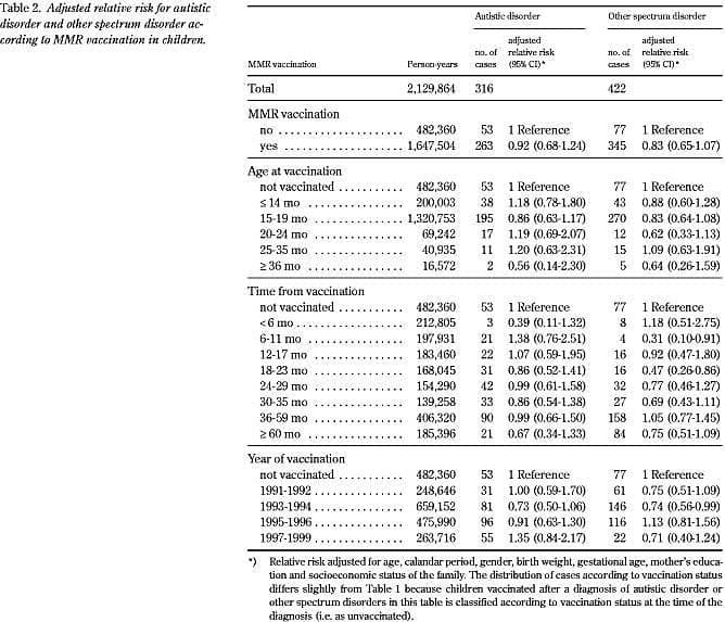Denne undersøgelse leverer tre stærke argumenter imod en kausal sammenhæng mellem MFR-vaccination og autisme. For det første var risikoen for at udvikle autisme ens blandt de vaccinerede og de uvaccinerede. Dette gjaldt både i de aldersjusterede og i de fuldt justerede analyser. For det andet var der ingen tidsmæssig sammenhæng mellem MFR-vaccination og udvikling af autisme. For det tredje var hverken autisme eller andre udviklingsforstyrrelser i det autistiske spektrum associeret med MFR-vaccinationsstatus.