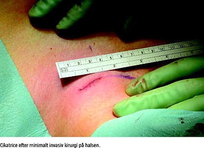 Konklusion: Succesraten ved fokuseret minimalt invasiv kirurgi ved primær hyperparathyroidisme findes at være på højde med de bedste resultater, som kan opnås ved traditionel eksplorativ kirurgi. Operationerne kan udføres meget sikkert med en lille komplikationsfrekvens. Postoperativ hypokalkæmi kan reduceres ved fokuseret kirurgi, og samtidig kan der opnås fordele som et bedre kosmetisk resultat, mindre kirurgisk traume og kortere operationstid.