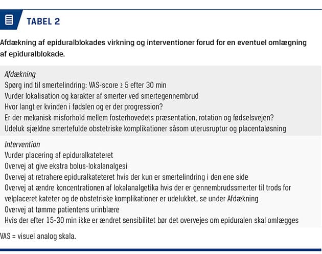 Hvordan kommer vi videre i de tilfælde, hvor anæstesiologerne forgæves har forsøgt anlæggelse af en sufficient epiduralblokade (Tabel 2)?