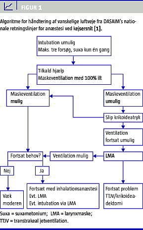 Enhver afdeling, der udfører sectio, bør have en retningslinje og en algoritme for håndteringen af den vanskelige luftvej hos den obstetriske patient. Denne algoritme bør trænes regelmæssigt.