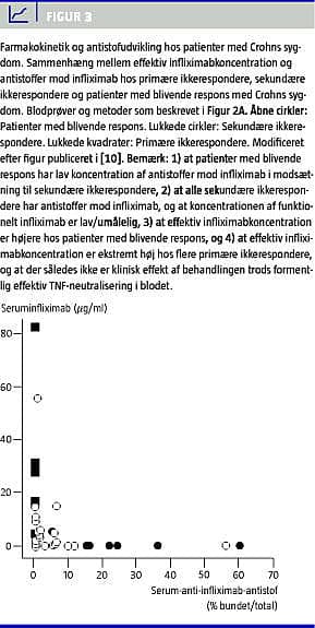 Farmakokinetiske undersøgelser vil kunne belyse, om det er relevant at øge dosis/formindske doseringsintervallerne hos primære ikkerespondere . Kun hvis medikamentniveauet i blodet er lavt, vil man kunne forvente effekt af dosisøgning. Er der en sufficient koncentration af funktionelt anti-TNF-antistof i blodet på standardterapi (høj TNF-bindingskapacitet), er det tvivlsomt, om TNF-blokade overhovedet er effektiv, og der bør snarest tilbydes anden behandling for at mindske risikoen for irreversibel vævsbeskadigelse og for at undgå omkostninger til nytteløs terapi.