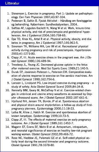 Motion har indtaget en stadigt større rolle i yngre kvinders dagligdag, og mange søger råd og vejledning hos jordemoder og praktiserende læge vedrørende motion, når de bliver gravide. Sundhedsstyrelsens anbefalinger for motion under graviditeten (mindst 30 min. moderat til hård fysisk aktivitet pr. dag) ligner de anbefalinger, der gives til den generelle befolkning. Det er velkendt, at motion under graviditeten har en række gavnlige effekter for moderen, heriblandt en nedsat risiko for gestationel diabetes og præeklampsi, men hvordan motion påvirker fosteret, er imidlertid mindre velundersøgt. Mekanismer, hvorigennem motion kan tænkes at påvirke fosteret, er: reduceret blodtilførsel til placenta som følge af en omfordeling af blod til den arbejdende muskulatur, hypertermi, frigivelse af hormoner, der stimulerer uteruskontraktioner, samt føtal hypoglykæmi. Alle disse fysiologiske responser er potentielt skadelige for fosteret, men selvom flere dyreforsøg understøtter disse hypoteser [6, 7], er evidensen i humane studier ikke overbevisende [8-10].