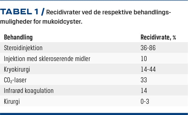 Der findes mange forskellige behandlingsmuligheder for mukoidcyster.
