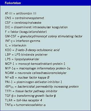 LPS-koncentrationerne ved meningokoksygdom er i plasma og cerebrospinalvæske (CSF) 100-1.000 gange højere hos patienter med septisk chok end hos andre, mens det modsatte parakliniske billede ses hos patienter med meningitis [9, 10].