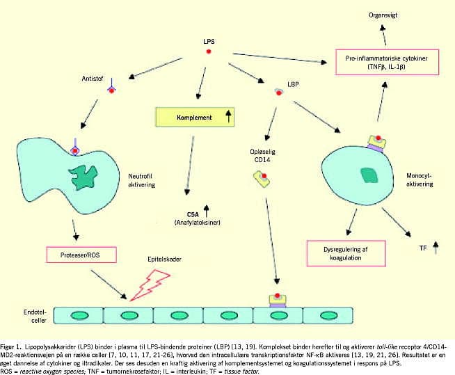 LPS har sammen med TNF og IL-1 en kraftig effekt på ekspressionen af vævsfaktor på endotelceller og monocytter [34]. Vævsfaktor aktiverer FVII [1, 10, 34] og spiller en vigtig prokoagulerende rolle i hæmostatiske dysfunktioner, der er associeret med svær sepsis.