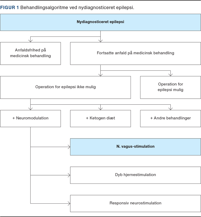 N. vagus-stimulation (VNS) er en effektiv behandlingsmulighed for patienter med behandlingsrefraktær epilepsi, hvor kirurgisk behandling ikke er mulig, og hvor VNS ikke udgør en kontraindikation (Figur 1).
