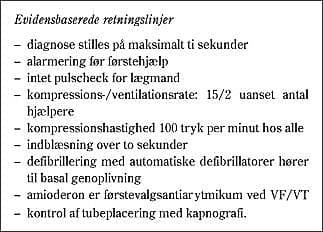 - Nielsen JR, Sandøe E. Retningslinier for genoplivning af voksne patienter. Ugeskr Læger 1995; 157: 5223-8.