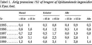Materiale og metoder: Den kliniske vejledning var udarbejdet af Dansk selskab for almen medicin. Vejledningen blev udsendt samtidig med indførelsen af mindre restriktive tilskudsregler for lipidsænkende lægemidler i december 1998. Ordinationer af lipidsænkende lægemidler blev analyseret ud fra receptdata i Odense PharmacoEpidemiological Database.