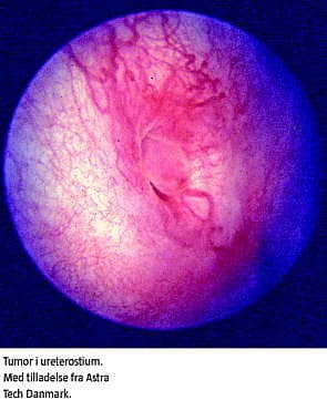I. En 58-årig kvinde var blevet diagnosticeret med HNPCC og mutation i MSH-2 -genet. Der var ingen symptomer fra urinvejene, hverken hæmaturi eller infektioner. I forbindelse med et screeningsprogram for HNPCC-patienter, der havde øget risiko for cancer i urinvejene, fik patienten foretaget en computertomografisk (CT) urografi og cystoskopi med cytologi på blæreskyllevæske. CT-urografien viste hydronefrose og dilateret ureter på venstre side. Cystoskopien viste en proces i venstre ureter, og cytologisvaret var, at der var pTa-grad II-celler (ikkeinvasiv papilomatøs tumor hvor der ses fortykkelse af urotelet med moderate cellulære ændringer). Patienten blev nefroureterektomeret, og det efterfølgende histologisvar viste, at der lå en invasiv tumor distalt i ureter.