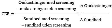 Sundhedsøkonomiske evalueringer er relevante, når det skal vurderes, om det sundhedsmæssige udbytte står i et rimeligt forhold til omkostningerne til behandlingen. Opgaven for den sundhedsøkonomiske evaluering er at opgøre det sundhedsmæssige udbytte og sætte dette i forhold til omkostningerne ved behandlingen. Dette forhold betegnes som den inkrementelle omkostningseffektbrøk (ICER), som i tilfældet med screening kan defineres som: