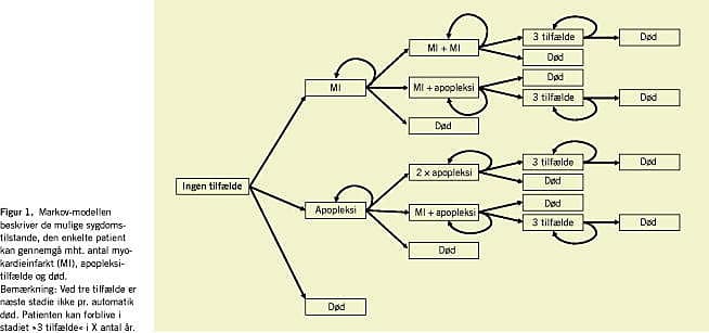 Materiale og metoder: Analysen er baseret på simulationer i en Markov-model. Der er anvendt kliniske og epidemiologiske data samt danske omkostningsestimater. De anvendte transitionssandsynligheder er udledt fra post hoc-analyser i CAPRIE-databasen.