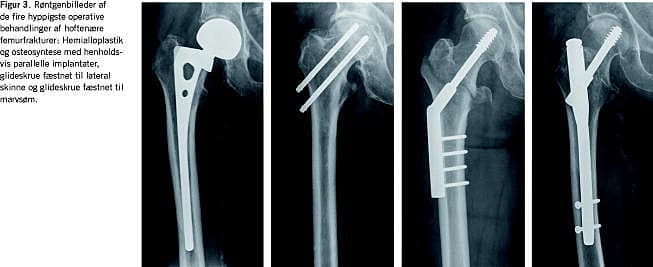 I de seneste år er der sket en udvikling inden for operativ teknik og perioperativ behandling [3], hvilket har medført en gunstig indvirkning på morbiditet og kirurgisk resultat. Frakturklassifikationer og operative metoder er præciseret, indlæggelsestiden har kunnet nedbringes ved oprettelsen af HF-enheder [4] og det er påvist, at operation senere end 24 timer efter traumet er forbundet med væsentligt øget mortalitet og morbiditet [7, 23]. Med overordnede reoperationsrater på 10-20% og et årligt forbrug på 120.000 sengedage i Danmark [5] medfører HF dog fortsat betydelige menneskelige og økonomiske omkostninger.