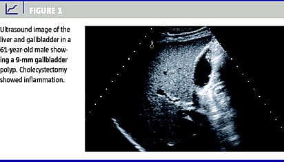 I alt 203 patienter i alderen 19-95 år (medianværdi 54 år) med GP blev inkluderet i studiet. Der var 89 (44%) mænd og 114 (56%) kvinder. Størrelsen af GP varierede fra 2 mm til 40 mm med en middelværdi på 5 mm. Hos 143 patienter (70%) var størrelsen af GP mindre end 6 mm. Den første kontrol-US blev gennemført hos 120 patienter (59%), og kun 31 (15%) gennemførte det fulde toårs US-opfølgningsprogram. Størrelsen af GP var uændret hos 100 patienter, aftagende hos fem patienter, tiltagende hos otte og helt regredieret hos 15 patienter. Af de 203 patienter med GP fik 13 patienter foretaget kolecystektomi, og heriblandt var der ingen neoplastiske eller maligne GP.