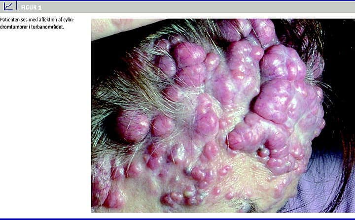 Cylindromer er sjældne, benigne adnekstumorer i huden, der udgår fra svedkirtlerne [1-5]. De kan forekomme som multiple tumorer eller som solitære tumorer. Multiple tumorer ses oftest hos patienter med Brooke-Spieglers syndrom, som er en autosomal dominant nedarvet sygdom, der er karakteriseret ved en kombination af multiple cylindromer og trickepiteliomer (samt evt. andre sjældne tumorer). De multiple tumorer ses typisk på pande og hovedbund som nodulære, mutiple tumorer, hvor de kan vokse sammen og danne en turbantumor [1-3]. De solitære cylindromer ses over hele kroppen. De ses sporadisk, og tumorerne er typisk ikke nedarvede [3, 4].