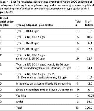 I Tabel 4 ses en oversigt over afdelingernes holdning samt ønsker til antal og type af UL-screeningstilbud.