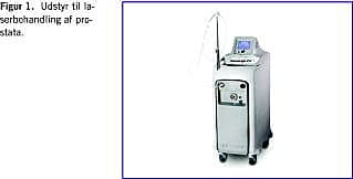 Urologi er modsat mange andre specialer præget af, at det er relativt vanskeligt a priori at stille en endelig diagnose. Samme symptomatologi kan optræde ved mange forskellige urologisk sygdomme, både maligne og benigne. Den benigne folkesygdom lower urinary tract symptoms (LUTS) har således ofte samme symptomatologi som cancer prostatae, den næst-hyppigste cancerrelaterede dødsårsag hos mænd i Danmark (15% af samtlige nyopdagede cancere i Danmark ligger i øvrigt inden for det urologiske område). LUTS optræder med alderen hos en stigende andel af hele befolkningen, f.eks. hos ca. 70% af de 60-70-årige. Afkræftes cancerdiagnosen, er behandlingen af LUTS på grund af de mange muligheder for behandling fra at være en simpel let håndterlig klinisk tilstand gradvist ved at udvikle sig til en specialistopgave. Mulighederne er i dag ekspektans, medicinsk behandling med α-blokkere, 5-α-reduktase-hæmmer, antikolinergika eller kombinationer heraf, kirurgisk behandling enten i anæstesi som åben kirurgi, transuretral resektion, transuretral laserevaporation (Figur 1) eller i lokal anæstesi ambulant i form af varmebehandling m.m. Effekten af laserbehandling, det seneste skud på stammen, er dog endnu ikke dokumenteret, men interessant er det, at teknikken med fordel kan anvendes i dagkirurgiske enheder.