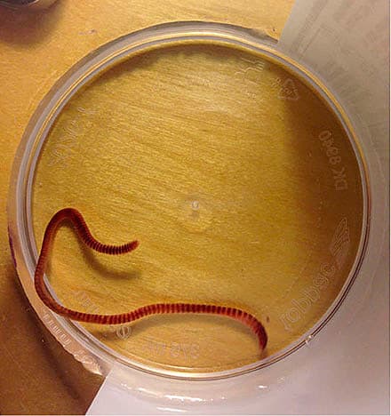 Ormene var stærkt røde og tydeligt leddelte (billede). Der er sandsynligvis tale om ledorm (Annelida) af slægten Tubifex. Disse fritlevende orme er beslægtede med regnorme og lever sædvanligvis i mudret og forurenet vand. De findes dog indimellem i toiletter og på badeværelser. Praktiserende læger, der præsenteres for en formodet parasitisk orm, bør være opmærksomme på denne differentialdiagnose, så man undgår unødvendig behandling. Fundne orm kan indpakkes i fugtig køkkenrulle, emballeres forsvarligt og indsendes til klinisk mikrobiologiske afdelinger med henblik på afklaring af diagnosen.