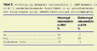 I Tabel 3 ses, at hormonbrugere svarede på spørgsmålet vedrørende naturmedicin i mindre grad, end kvinder, der aldrig havde taget hormon. Blandt dem der svarede, sås en tendens til, at kvinder, der havde taget hormontilskud, oftere også havde prøvet naturmedicin, end kvinder, der ikke havde taget hormontilskud.