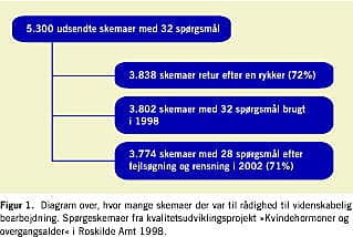 Undersøgelsen er en tværsnitsundersøgelse med et anonymt postomdelt spørgeskema. Den er en del af kvalitetsudviklingsprojektet »Kvindehormon og overgangsalder« i Roskilde Amt i 1998, hvor alle 142 praktiserende læger i Roskilde Amt blev inviteret til at deltage. En nærmere beskrivelse kan ses i [13].