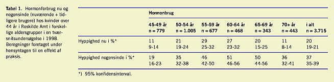 Hyppighed af hormontilskud for gener i overgangsalderen (Tabel 1 )