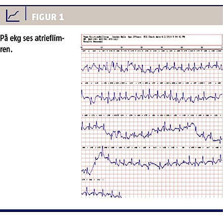 Patienten blev udstyret med en iPhone-ekg-monitor udviklet af Cardiac Designs. Efter to uger fremsendte han en pdf-fil med ekg, som dokumenterede paroksystisk atrieflimren med en frekvens på op til 210 slag/min (Figur 1).