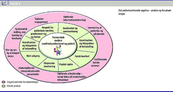 Summary Patient-centered care in Danish hospitals will heighten the quality Ugeskr Læger 2012;174(45):2791-2795 Patient-centered care is a multidimensional quality goal, which aims at establishing a partnership between doctors and patients and to ensure that clinical practices are based on the individual patient's needs and preferences. In this article the concept of patient-centered care and how to apply this in a hospital setting is sought clarified. The principles of patient-centered care and the organizational preconditions needed for the implementation of this are described based on the literature, followed by a discussion of the status and challenges in Danish health care. We conclude that a stronger focus on patient-centered care is needed.